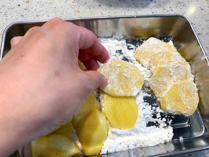 片栗粉をつけることで、揚げなくても表面がカリッと仕上がります!