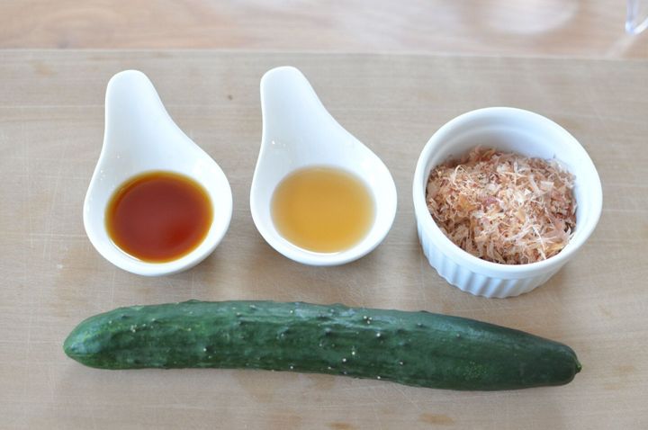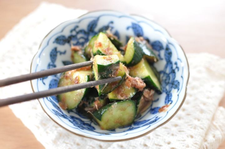 だし醤油を吸ったかつお節がきゅうりに絡んで、美味しいです。