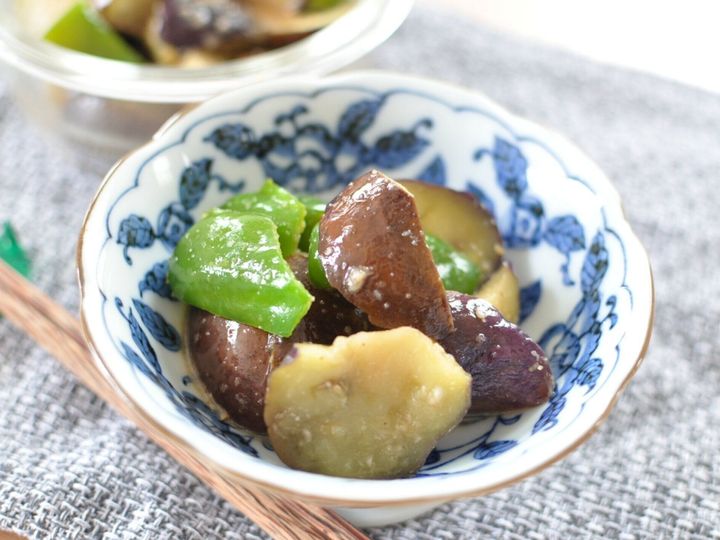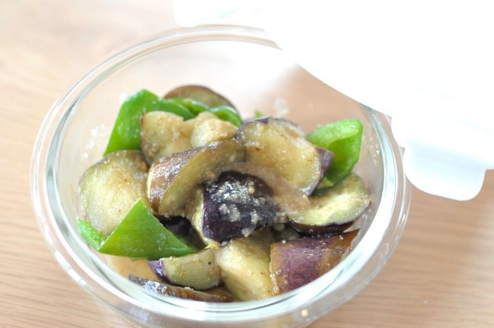 レンジでサクッと作れる「なすとピーマンの甘辛ごま味噌ダレ」をご紹介しました。