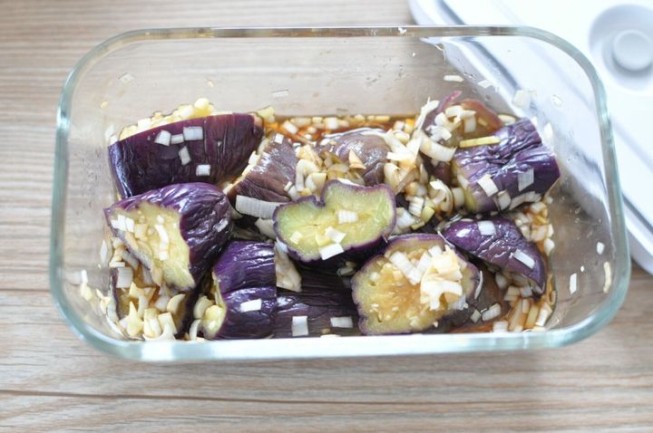 大抵のなすは600W2分で大丈夫ですが、大きかったり太かったりする場合は、追加で10~20秒加熱します。まずは2分加熱して、様子をみてください。