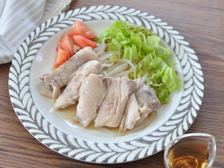 ほんのり塩味がしみ込んだ蒸し鶏は、旨味のあるさっぱり味で、食欲のない日でも食べやすいですよ。今回は混ぜるだけの簡単タレをも作っていきます。