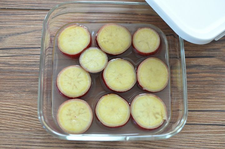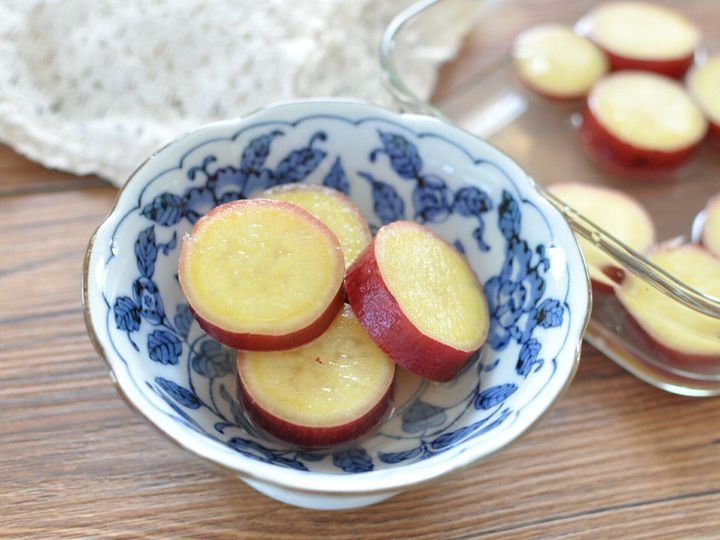 さつまいもは、切り口からアクが出てきます。そのため切ったら、まず水にさらしてアク抜きをしてください。アク由来のえぐみが取れて、雑味のない味になります。