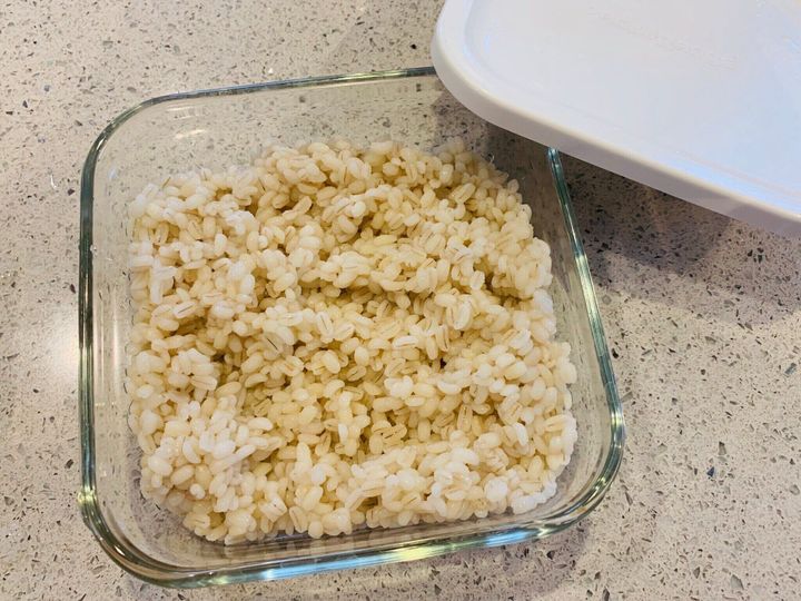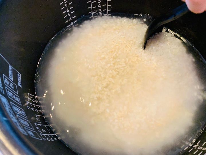 (パッケージに記載されていると思いますが、もち麦50gに対して水100m相当。もち麦の種類によっては浸水させます。)