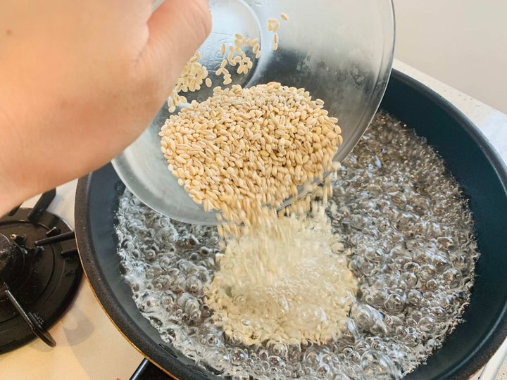 この2つの方法が基本的な方法です。最近は、茹でた状態の「ゆでもち麦」も売られていて、そのまま使えて便利です。
