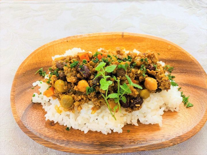 こちらは、ドライカレー。全体的に茶色っぽくなりがちな煮込み系の料理にもパセリが効果的です。料理に立体感が出て美味しそうに見えますよ。