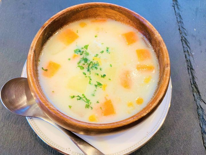 一番使いやすくパセリ効果を発揮してくれるのが、ホワイト系のスープ。ただ盛り付けただけだと全体が白っぽくのっぺりとしてしまいますが、パセリをトッピングするだけで美味しそうに見えます。