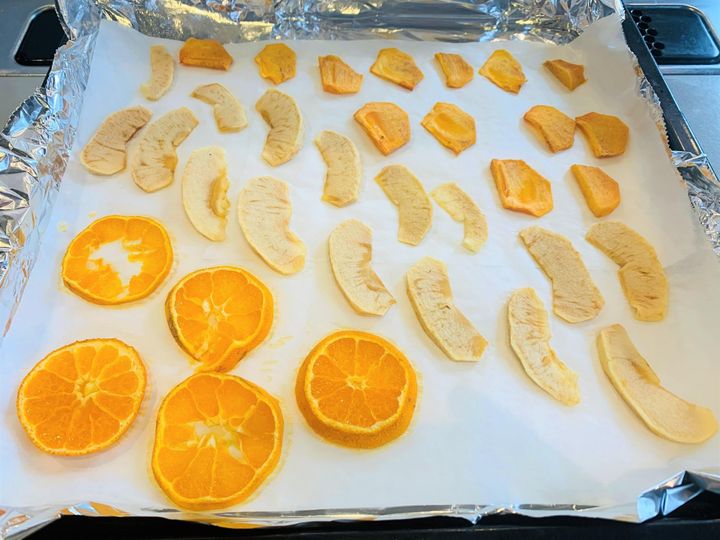 セミドライでもチップスでも、焼き時間を調整することでお好みのドライフルーツが簡単に作れます。オーブンに入れておくだけなので、特に手間も難しい手順もなく、簡単にできておすすめ。オレンジやみかんは紅茶やサワーなどに入れて飲むのも良いですよ。