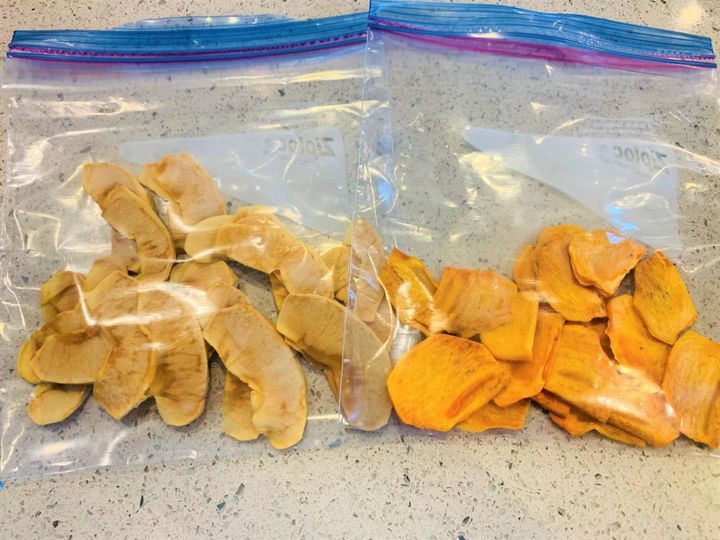 目安は…1時間でセミドライ、90分でパリパリのチップスのようになります。