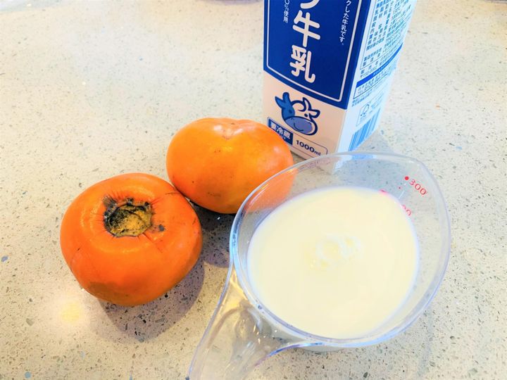 材料は柿と牛乳だけ。混ぜて放置しておくだけで、フルフルプリンができます!