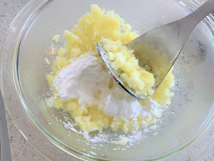 1.じゃがいもはレンチンか茹でて柔らかくし、マッシュします。Aも加えてつぶしながら良くませます。