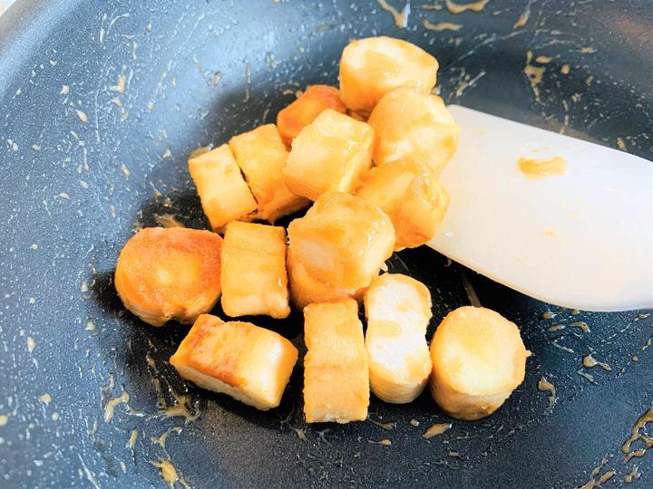わずか数分&フライパン一つで作れるレシピなので、お麩のストックがあればすぐにキャラメル味のカリサク食感が美味しいラスクが楽しめます♪