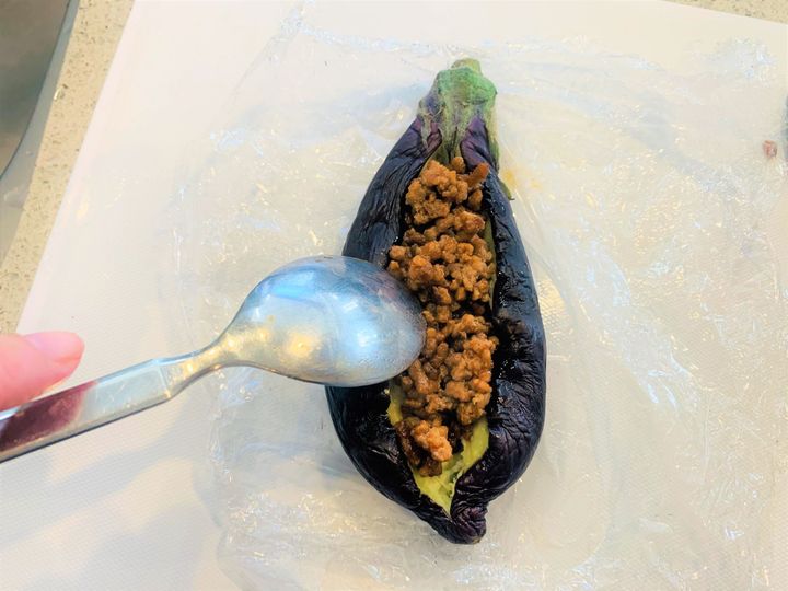 丸ごとガブっといただきます。なすがトロトロジューシー、お肉の濃いめの味付けと良く合い美味しいです。