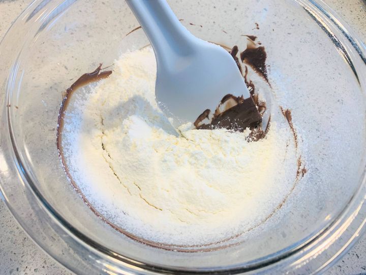 粉っぽさがなくなるまで、ゴムベラでよく混ぜます。