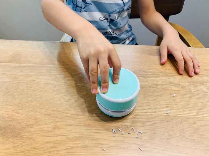 そんな時に卓上の掃除機で掃除できると本当に楽!何より子供たちが自分でこまめに掃除してくれるようになり、助かっています。