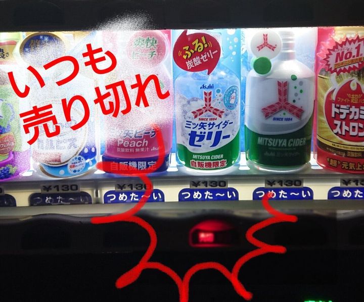 私は中学生の娘から教えてもらったのですが、アサヒ飲料の自販機をちょくちょくチェックしても常に売り切れランプがついていて…。
