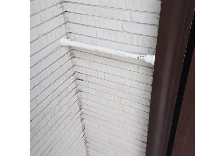 玄関外の一時置き場の突っ張り棒は、必要のない日は取っておけばスッキリします。