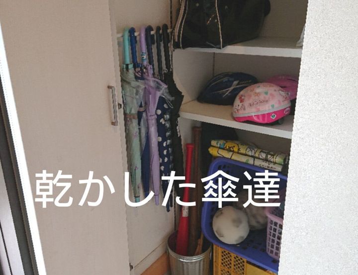 雨がやんだら傘をサッと干して、こちらへしまうことにしました。