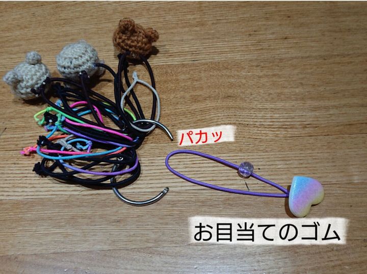 お目当てのヘアゴムのところでリングの開閉部をパカッと開けば、すぐに欲しいヘアゴムが取り出せる!