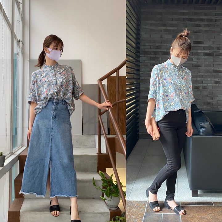 ってことで、大人にも合う優しい色合いのボタニカル柄シャツを選びました。