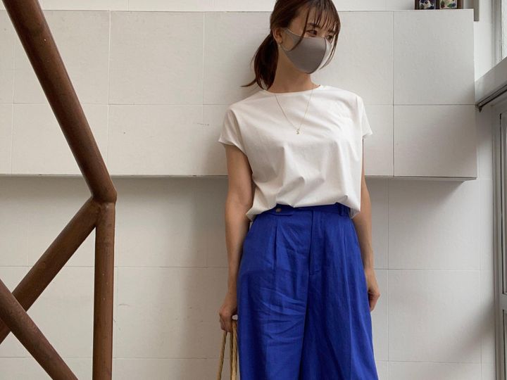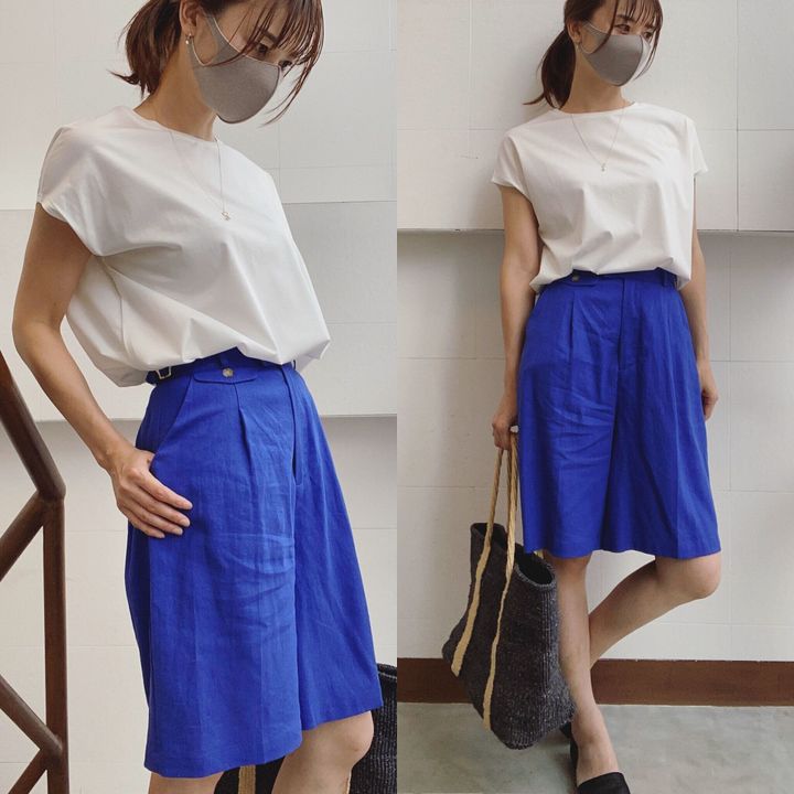 膝丈でハイウェスト、素材も麻レーヨンで大人な雰囲気のものを選んで。