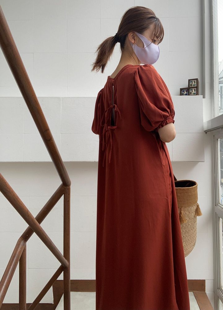 バックリボンが可愛いマキシ丈なので大人可愛いワンピース。