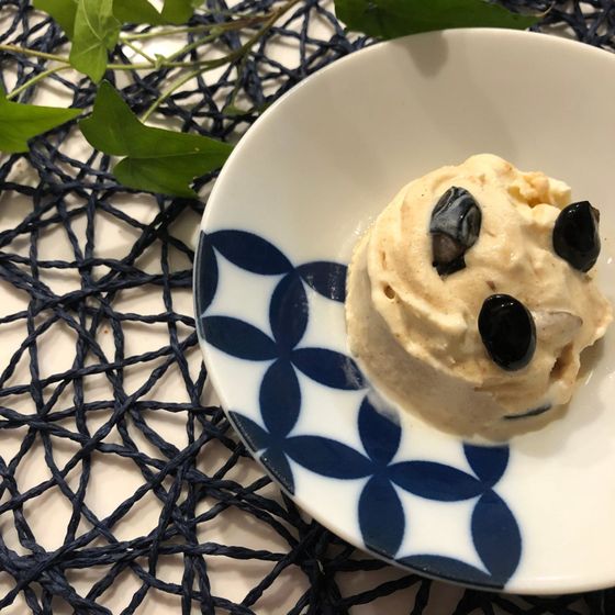 ③②にバニラアイスを加え、揉むようにきな粉と馴染ませる。