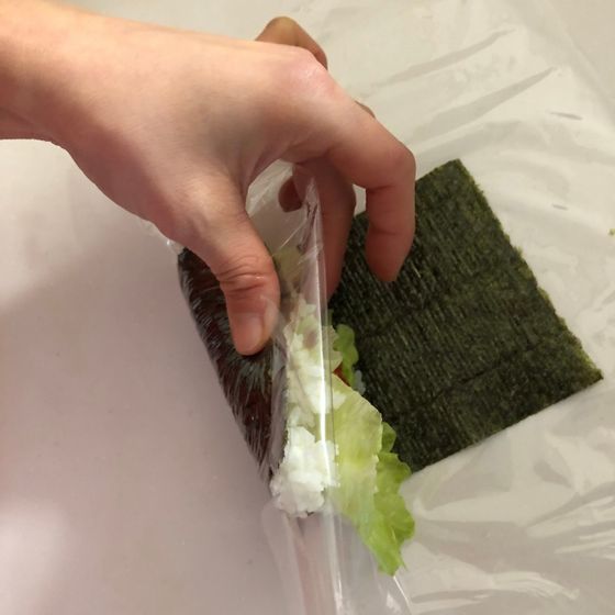 前回同様、巻きすの代わりに【ラップ】を使って作っていきます。