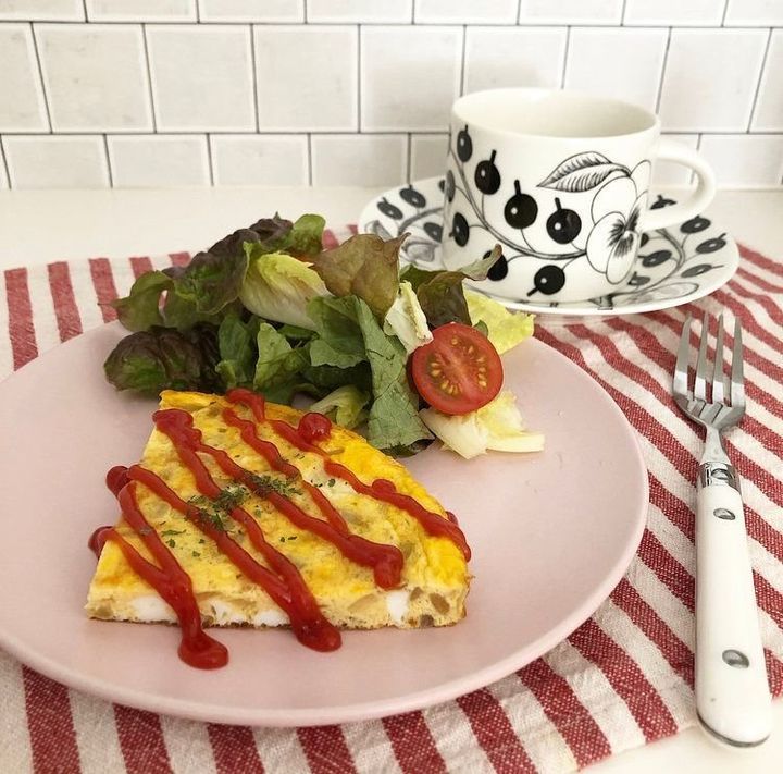 ・ご飯に混ぜ、ケチャップを加えてケチャップライス+卵で「オムライス」
