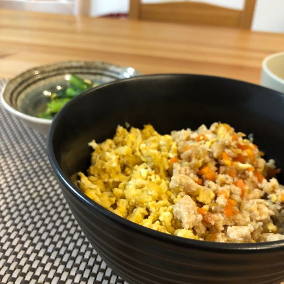 ①鶏そぼろごはん