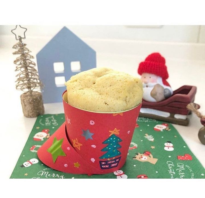 この写真は、昨年の冬クリスマスブーツに見立てて作ったカップケーキです。