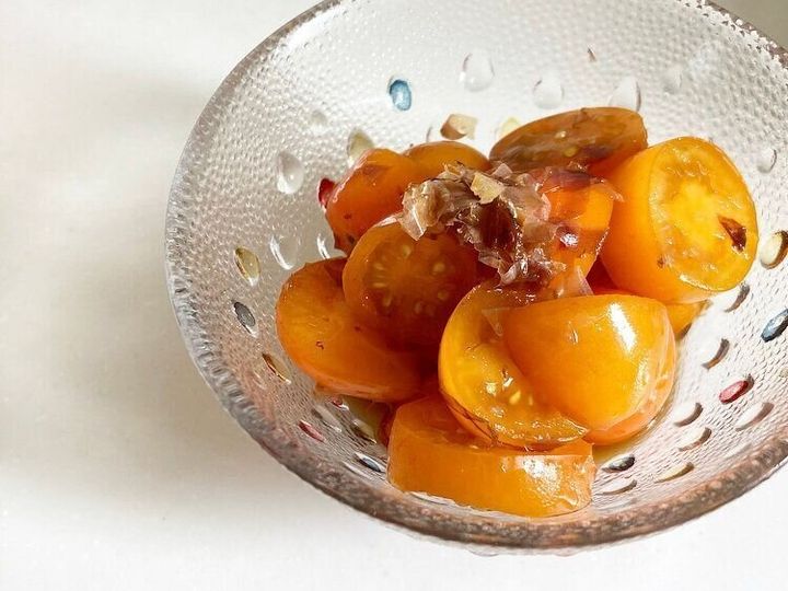 ※鰹節を加えることで、長時間漬け込まなくてもトマト全体に鰹節がからみ簡単に味が馴染みます。