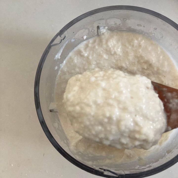 2,牛乳30cc、コンソメ粉末を入れ、滑らかになるまで撹拌します。