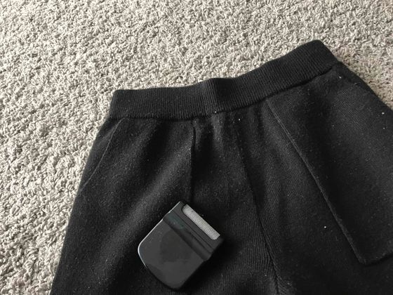 今回は、毛玉や毛羽立ちが目立ちやすい黒のニットパンツでお試し。今季、GUで買ったアクリル87%・ナイロン13%のものです。