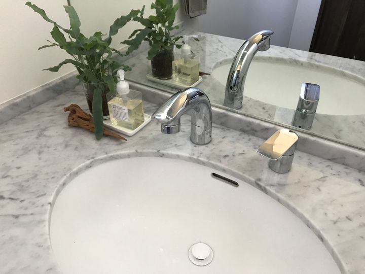 シンプルかつ、清潔感のあるホワイトなので、洗面台にしっかり馴染んでいます。