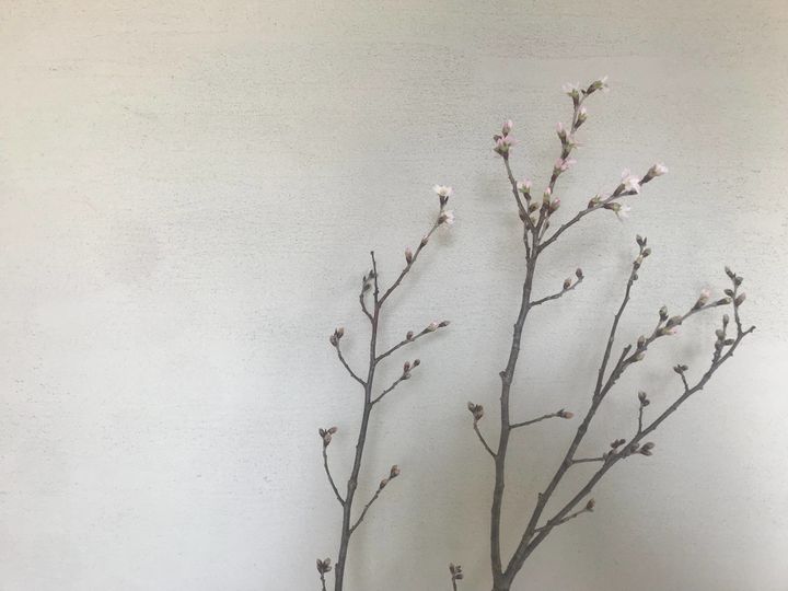先日、我が家の玄関に桜の枝を飾りました。買ったときは蕾だったのに、気温が上がったので徐々に開き始めました。まだ冬ですが、気分はもう春です♩