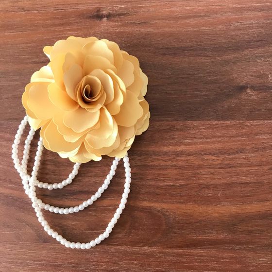 このままでもシンプルで素敵かもしれませんが、コサージュを足してみるとこうなります