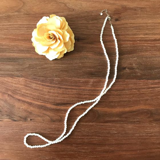 パール調ネックレスも、パール風のビーズを好きなようにつなげたものでも良いですし、ブレスレットでもOK。