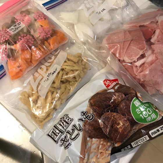 豚汁を1回作るときに、もう1回分の豚汁の具を切ってまとめておくと便利です♪