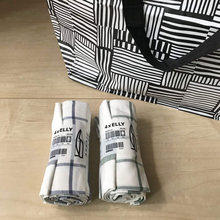 買ってきたのはいつものキッチンクロスです。そのほか、この日はホットドッグのセットなどの食料品も買って帰りました。