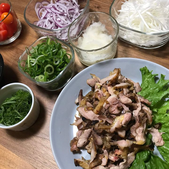 ▼またある時は鶏のたたきに薬味どっさり