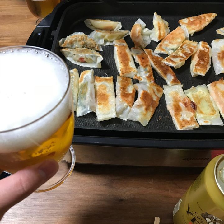 ▼この日はホットプレートで餃子