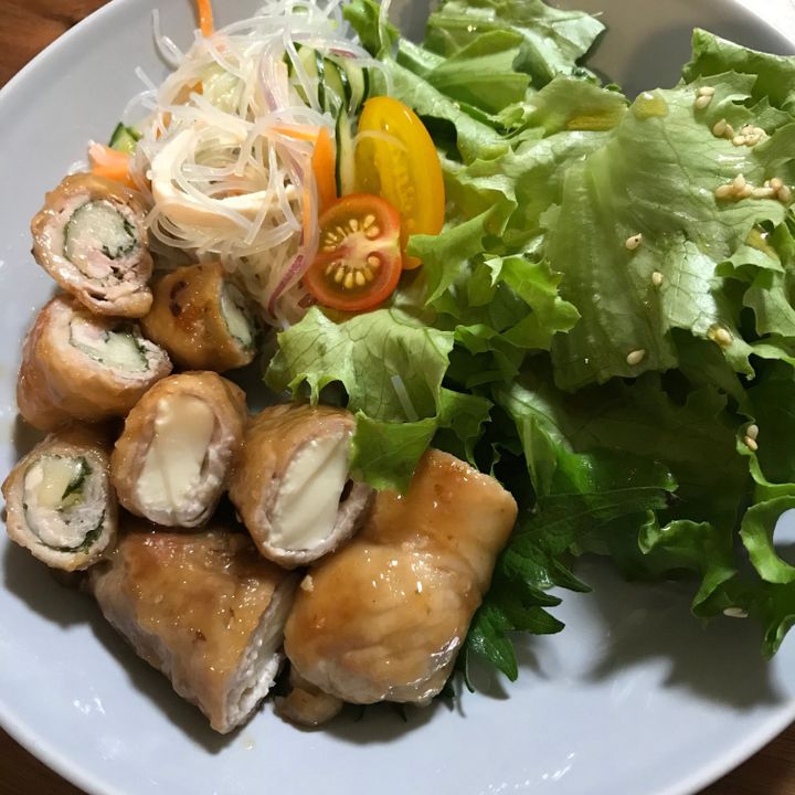 ▼買い物した日。予定通り春雨サラダと豆腐の肉巻き