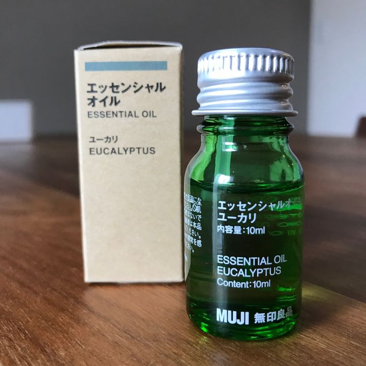 同じく無印良品のアロマディフューザーで使っています。一番よくつかうのがこのユーカリの香り。これ単独でも、ラベンダーと混ぜたりしてもスッキリたまらなく癒される香りです。