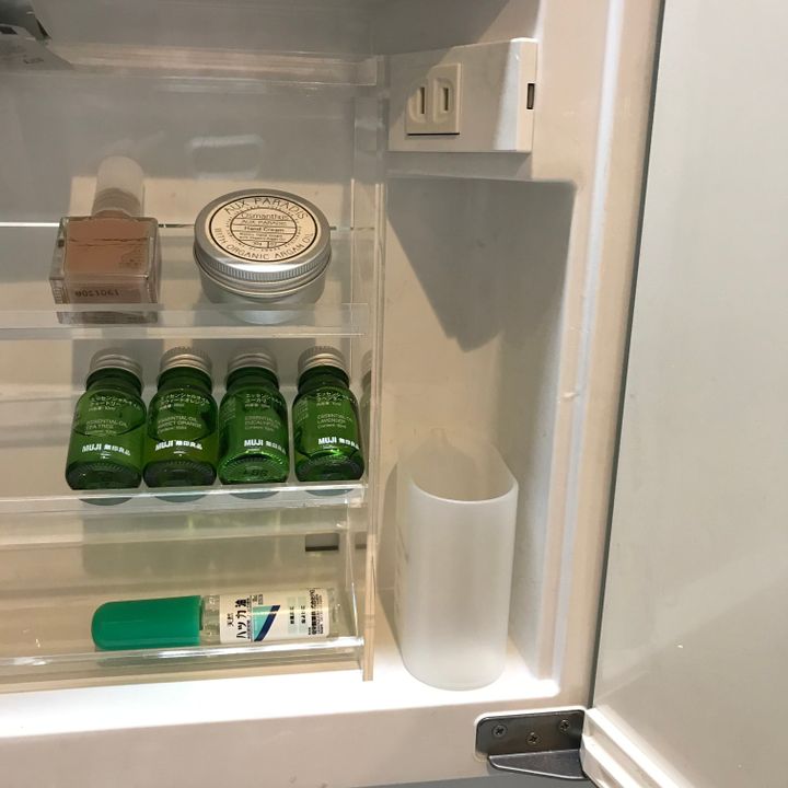 ▼洗面所の鏡裏収納に他のオイルと一緒にしまっています