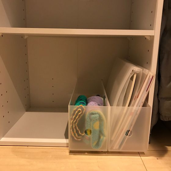 頻度が高くなさそうな絵具セットや上履き入れ(もしかしたら、どちらも長期休暇の間だけ家に置いておくものかもしれませんね!)で収納スペースの大半をとっているのがもったいないなぁと思うのです…!