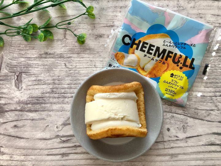 正式名称は、【チームッフル ースフレふんわりワッフルレアチーズー 】だそうで、169kcalです。