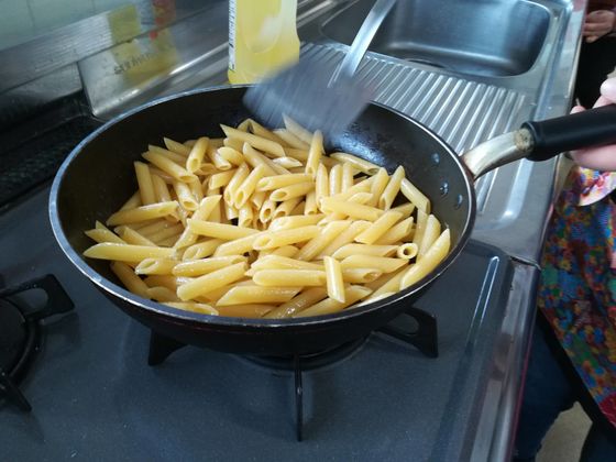 これは、パスタを茹でずに、水に3時間ほど浸けておきます。あとは炒めるだけで、シコシコした食感のパスタができちゃうんです!