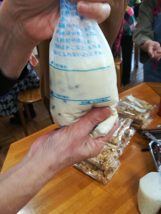 この日は、専用の「ハイゼックス炊飯袋」を使って「ごはん」「蒸しパン」を作りました!このハイゼックス炊飯袋は一合のごはんを炊くための米の量、水の量が線で示してあるので、その線までお米と水をいれるだけ!