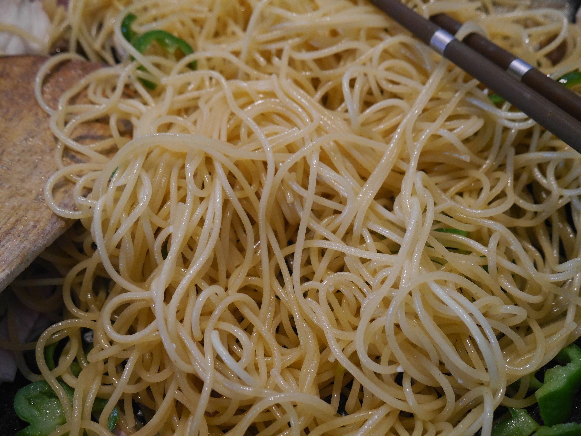 やっぱり我が家に常備の焼きそば!でも、いつも同じソース味でもつまらない、というわけで…。
