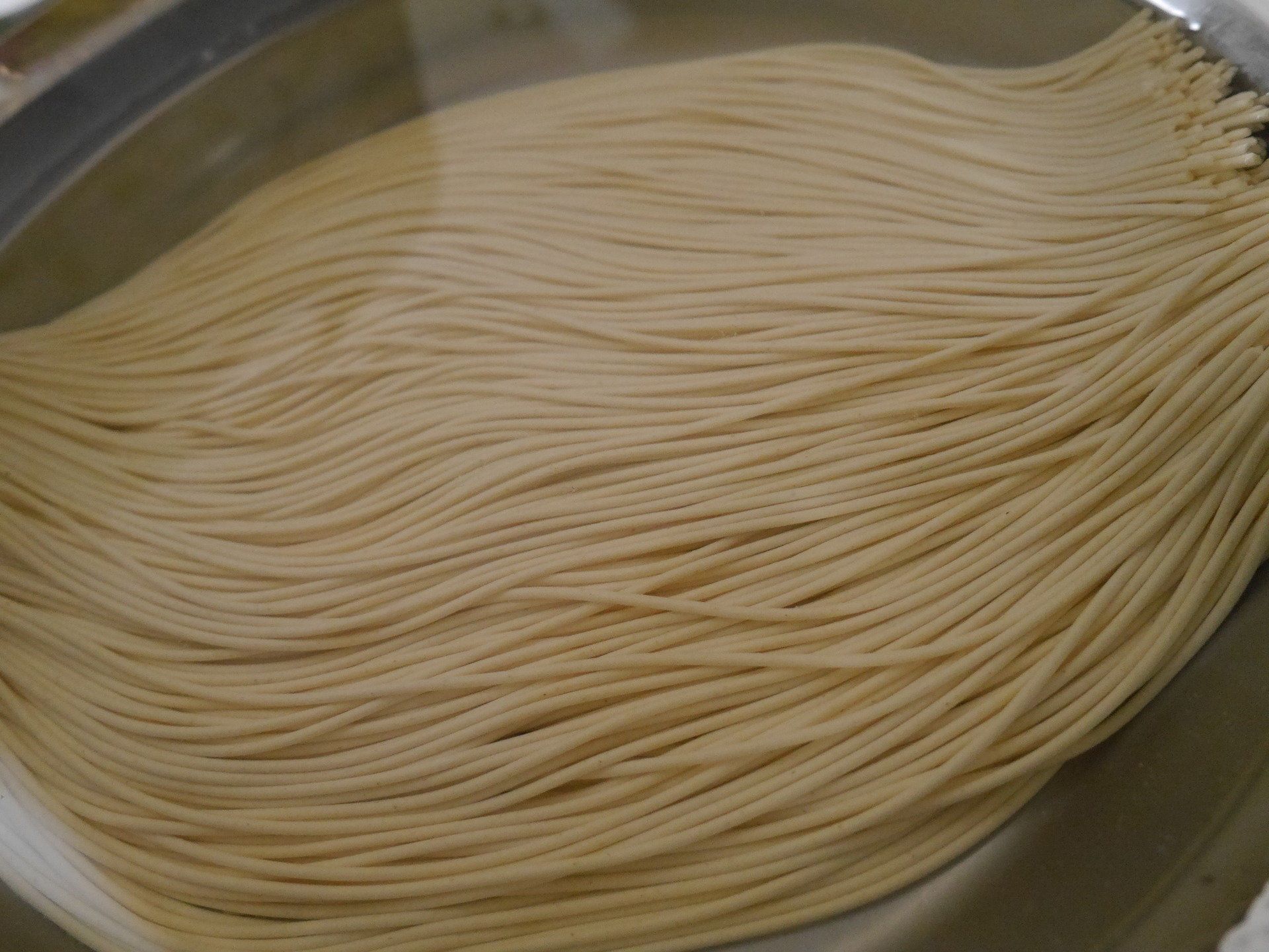 用意するのは、フツーの乾麺のパスタ。これを、3時間ほど水につけておくと、水を含んで真っ白になります。